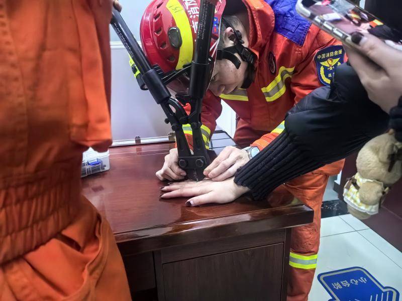 r经过约3分钟的细致操作,戒指被成功取下。看到手指恢复自由,求助的女子如释重负,对消防员连连致谢:“太感谢你们了,这么快就解决了我的难题。”消防员笑着回应:“后续要冷敷消肿,别用力揉搓,有不适及时就医。”